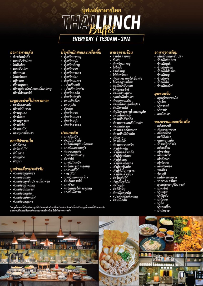 The Thai buffet is available everyday, from 11.30 AM to 2.00 PM. For adults, the price is THB 290 net and for children aged 4 to 12 years, it is THB 145. You can enjoy a wide variety of Thai dishes, all made with fresh ingredients and traditional recipes.